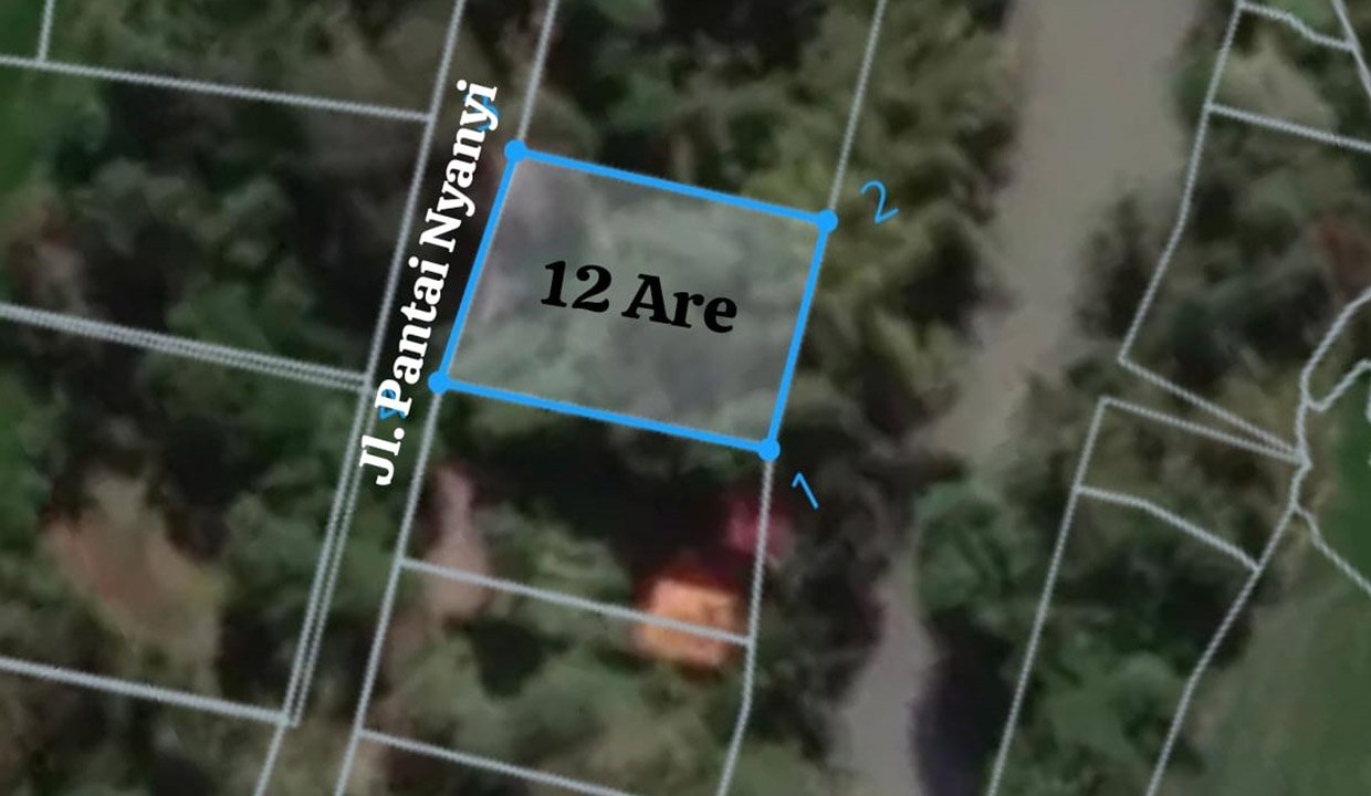 Discover a strategic investment opportunity with this prime leasehold land for rent in the desirable area of Nyanyi. Ideally situated just 1 km from the beautiful Pantai Nyanyi and the innovative Nuansa development, this “Los Sungai” riverside plot offers both tranquility and potential. The land spans a generous 12 ares (1,200 m²) and features a wide 30-meter frontage along a well-maintained kabupaten hotmix road, ensuring excellent accessibility and visibility. With its yellow zone (ITR Kuning) residential classification, this property is perfectly suited for developing a private villa compound, a boutique guesthouse, or long-term rental properties, allowing you to capitalize on the area’s growing popularity.