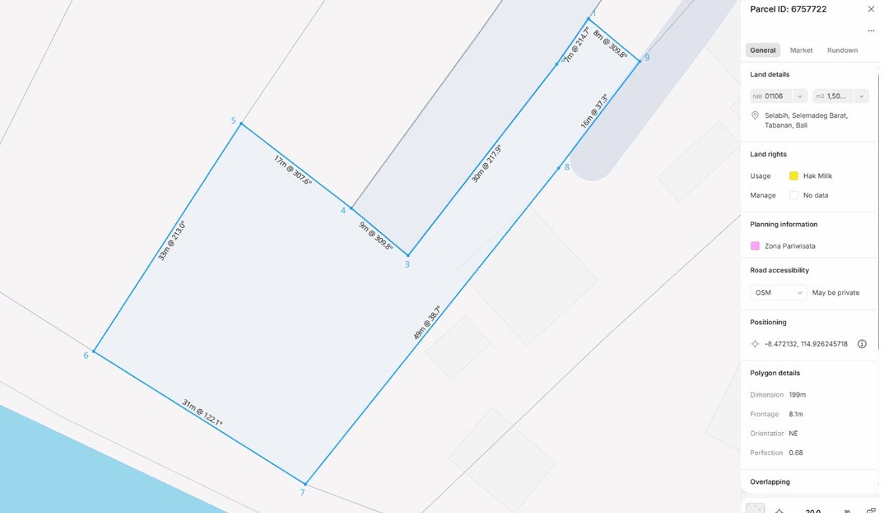 Freehold land (SHM) of 6,900m² (69 are) for sale in the Pantai Lalanglinggah area, Tabanan, consisting of 3 separate certificates (4,850m² + 550m² + 1,500m²). Strategically located on the main Denpasar-Gilimanuk route with 16-meter wide asphalt road access, this property has a tourism-licensed ITR, making it ideal for developing a resort, premium villa, mini hotel, or beachfront café. The land is flat, hard, and ready to build, supported by ready-to-connect electricity facilities, ensuring ease of development without technical constraints. With the potential of natural beaches that are still pristine, this is a golden opportunity to build a high-value tourism business in West Bali.
