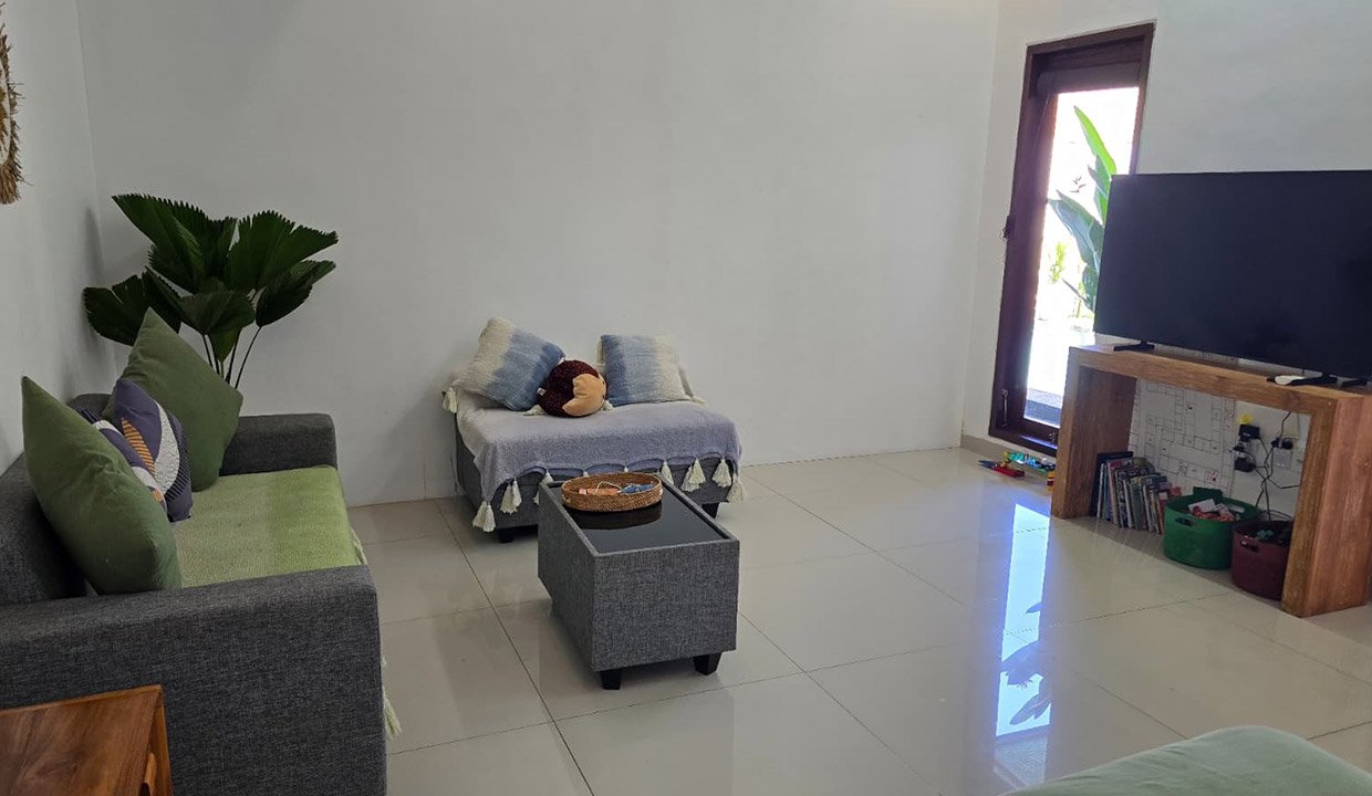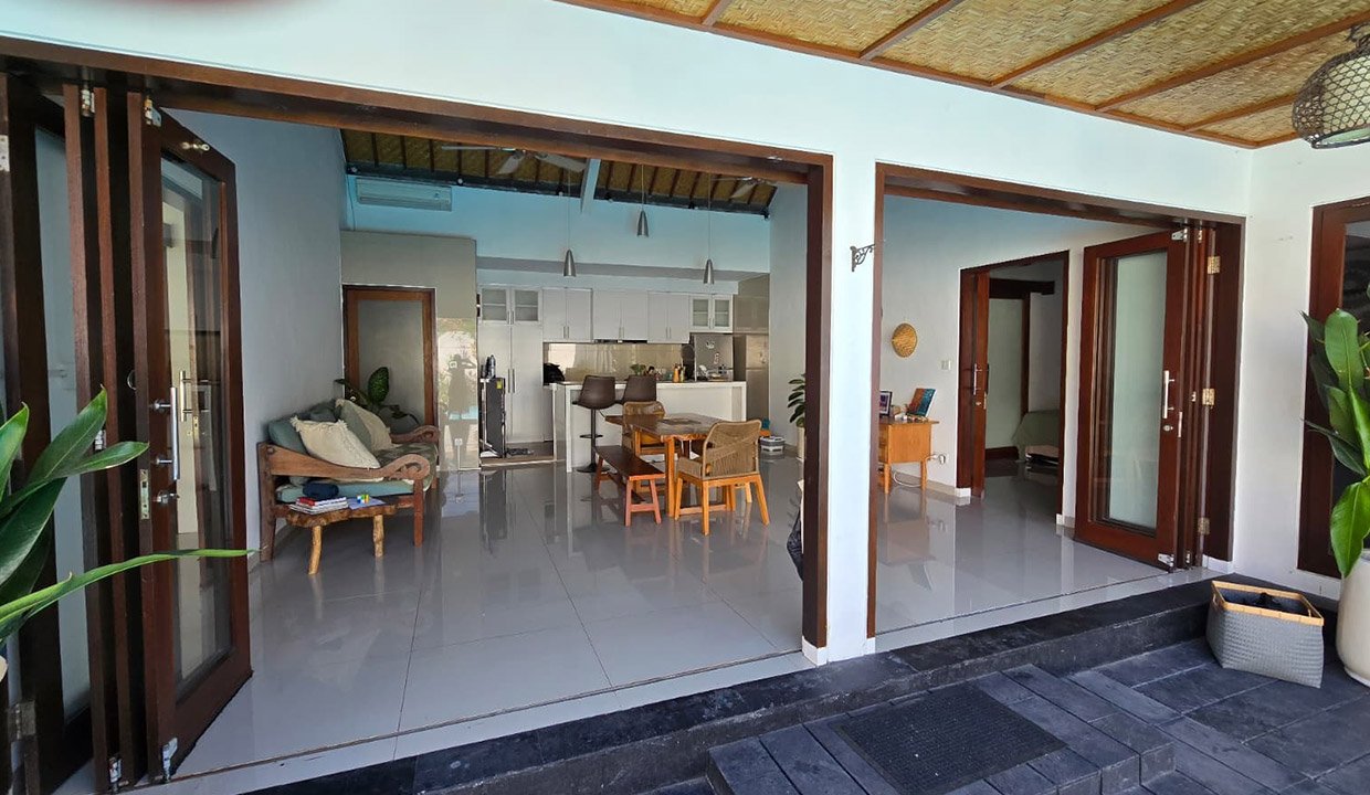 Discover a perfect blend of tranquility and convenience with our lovely 3-bedroom villa, now available for rent in the sought-after area of Umalas/Kerobokan. Nestled in a safe and quiet gang, this home offers an idyllic and secure environment with remarkably easy access to some of Bali’s best schools. You are just 1 minute from Pepito Supermarket, 2 minutes from the Amplitude Skate Park, and a short 5-7 minute drive from renowned institutions like Super Cool School and Pro Ed School. The villa itself is designed for comfortable living, featuring three spacious bedrooms with AC and huge bathrooms, an enclosed kitchen, a cozy living area, and a separate guest toilet.